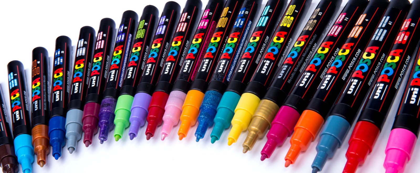 Los marcadores de pintura POSCA no tóxicos a base de agua se pueden usar en casi cualquier superficie y son amados por profesionales y aficionados creativos. La pintura opaca sin alcohol ni disolventes cubre bien, se puede mezclar, se seca rápidamente y se puede superponer cuando está seca. Disponible en 55 colores y ocho tamaños de punta que van desde .7 mm hasta 15 mm para todo tipo de arte, artesanía, graffiti, decoración y más.